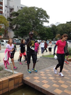 その後、大濠公園に移動してエリック先生と一緒に外周を走りました。